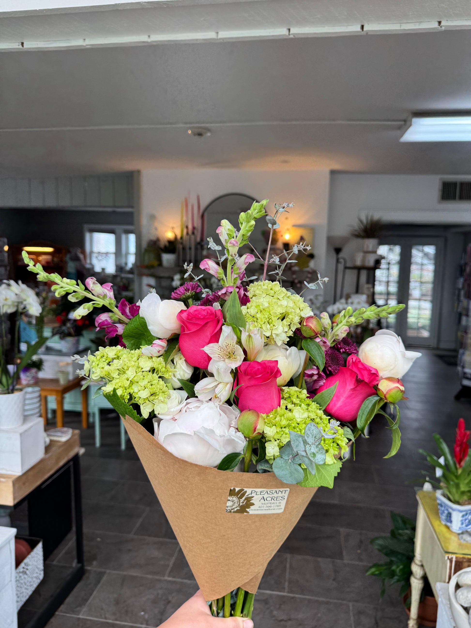 Trust the professionals for a seasonal mixed bouquet of stems, wrapped in Brown Paper ~ Colors and Blooms will reflect the surrounding holidays and changing seasons
